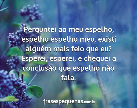 Perguntei ao meu espelho, espelho espelho meu, existi alguém mais feio que eu? Esperei, esperei, e cheguei a conclusão que espelho não fala.