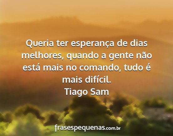 Queria ter esperança de dias melhores, quando a gente não está mais no comando, tudo é mais difícil.Tiago Sam