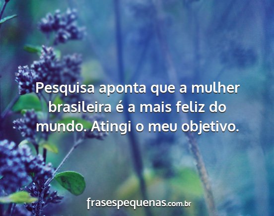 Pesquisa aponta que a mulher brasileira é a mais feliz do mundo. Atingi o meu objetivo.