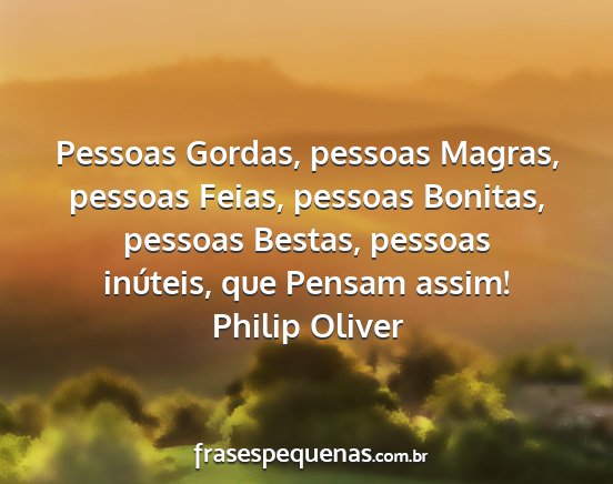 Pessoas Gordas, pessoas Magras, pessoas Feias, pessoas Bonitas, pessoas Bestas, pessoas inúteis, que Pensam assim!Philip Oliver