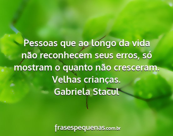 Pessoas que ao longo da vida não reconhecem seus erros, só mostram o quanto não cresceram. Velhas crianças.Gabriela Stacul