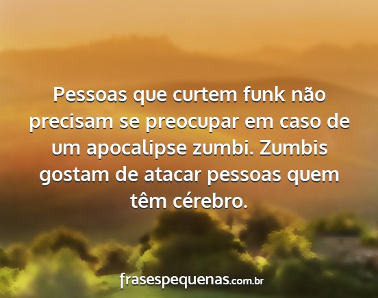 Pessoas que curtem funk não precisam se preocupar em caso de um apocalipse zumbi. Zumbis gostam de atacar pessoas quem têm cérebro.