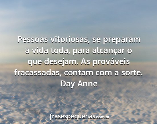 Pessoas vitoriosas, se preparam a vida toda, para alcançar o que desejam. As prováveis fracassadas, contam com a sorte.Day Anne