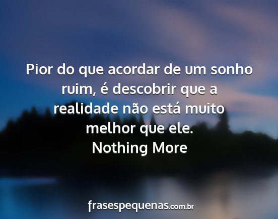 Pior do que acordar de um sonho ruim, é descobrir que a realidade não está muito melhor que ele.Nothing More