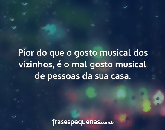 Pior do que o gosto musical dos vizinhos, é o mal gosto musical de pessoas da sua casa.