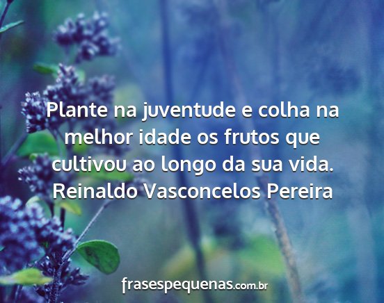 Plante na juventude e colha na melhor idade os frutos que cultivou ao longo da sua vida.Reinaldo Vasconcelos Pereira
