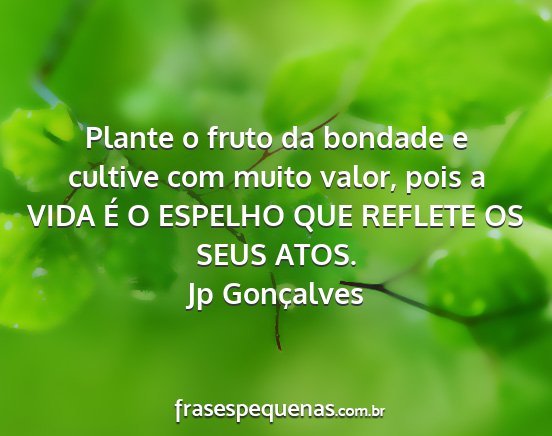 Plante o fruto da bondade e cultive com muito valor, pois a VIDA É O ESPELHO QUE REFLETE OS SEUS ATOS.Jp Gonçalves