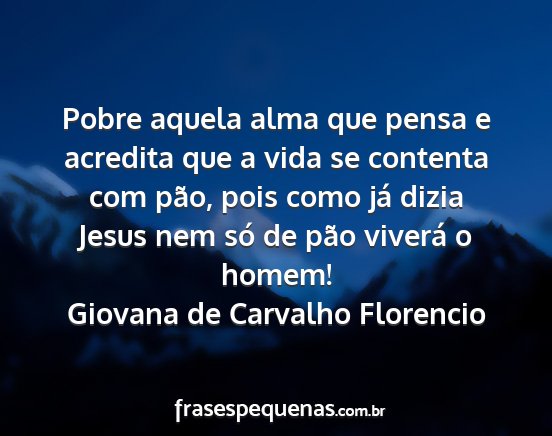 Pobre aquela alma que pensa e acredita que a vida se contenta com pão, pois como já dizia Jesus nem só de pão viverá o homem!Giovana de Carvalho Florencio