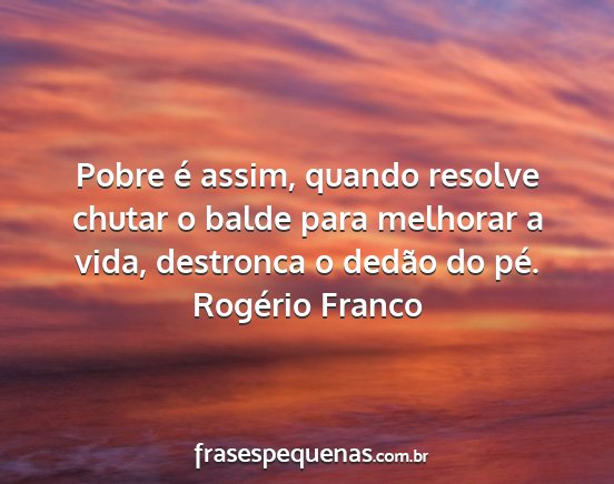 Pobre é assim, quando resolve chutar o balde para melhorar a vida, destronca o dedão do pé.Rogério Franco