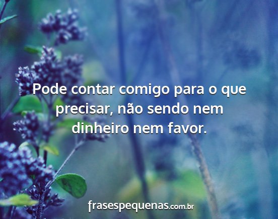 Pode contar comigo para o que precisar, não sendo nem dinheiro nem favor.