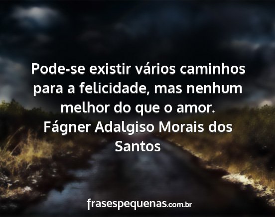 Pode-se existir vários caminhos para a felicidade, mas nenhum melhor do que o amor.Fágner Adalgiso Morais dos Santos