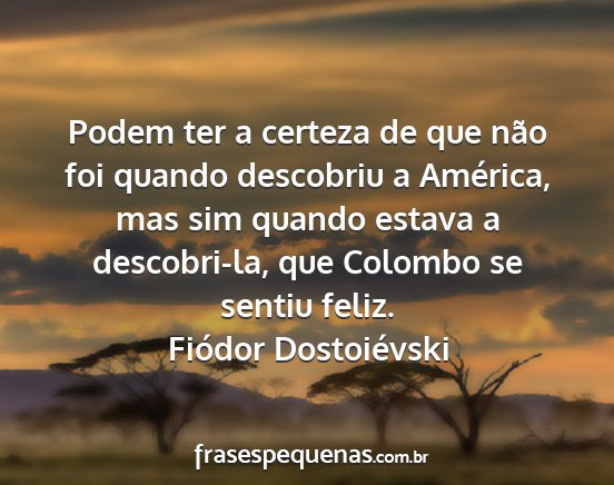Podem ter a certeza de que não foi quando descobriu a América, mas sim quando estava a descobri-la, que Colombo se sentiu feliz.Fiódor Dostoiévski
