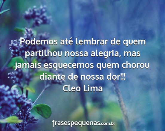 Podemos até lembrar de quem partilhou nossa alegria, mas jamais esquecemos quem chorou diante de nossa dor!!!Cleo Lima