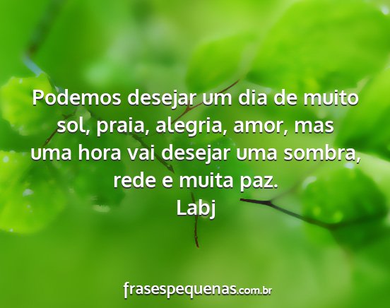 Podemos desejar um dia de muito sol, praia, alegria, amor, mas uma hora vai desejar uma sombra, rede e muita paz.Labj