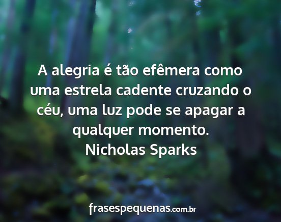 A alegria é tão efêmera como uma estrela cadente cruzando o céu, uma luz pode se apagar a qualquer momento.Nicholas Sparks