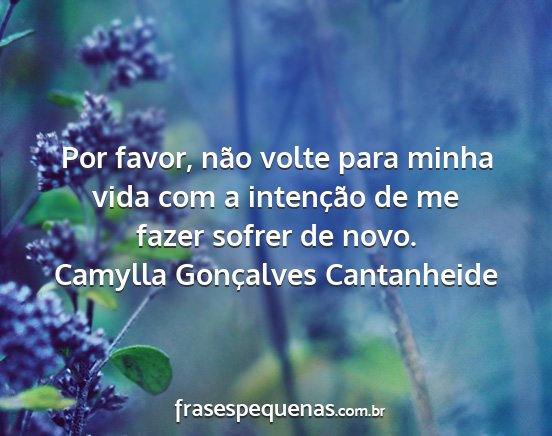 Por favor, não volte para minha vida com a intenção de me fazer sofrer de novo.Camylla Gonçalves Cantanheide