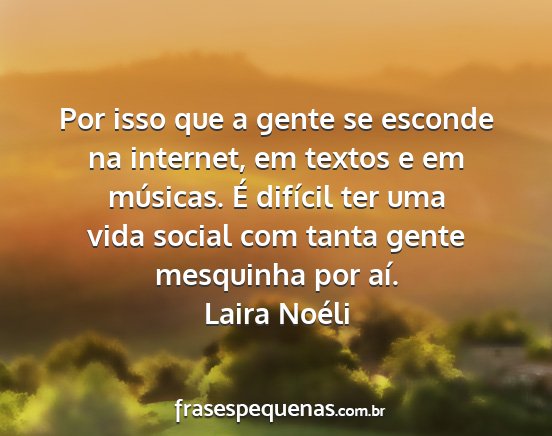 Por isso que a gente se esconde na internet, em textos e em músicas. É difícil ter uma vida social com tanta gente mesquinha por aí.Laira Noéli
