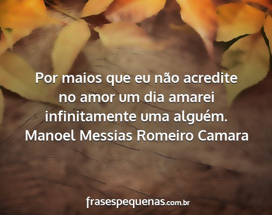 Por maios que eu não acredite no amor um dia amarei infinitamente uma alguém.Manoel Messias Romeiro Camara