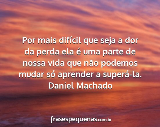 Por mais difícil que seja a dor da perda ela é uma parte de nossa vida que não podemos mudar só aprender a superá-la.Daniel Machado