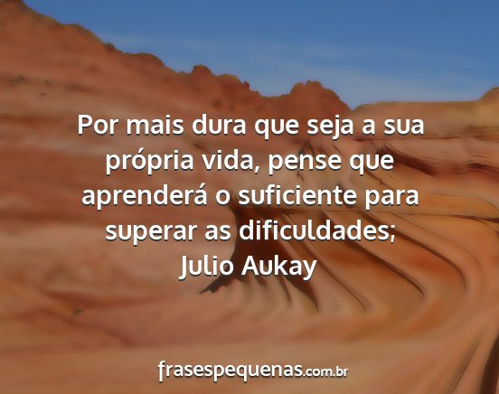 Por mais dura que seja a sua própria vida, pense que aprenderá o suficiente para superar as dificuldades;Julio Aukay
