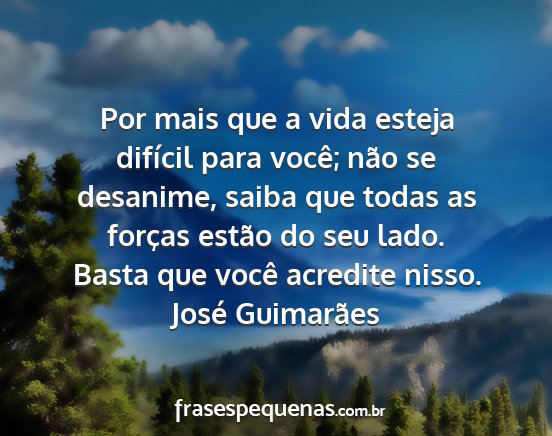 Por mais que a vida esteja difícil para você; não se desanime, saiba que todas as forças estão do seu lado. Basta que você acredite nisso.José Guimarães