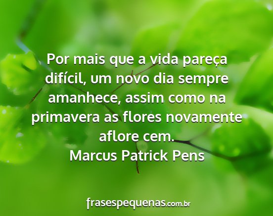 Por mais que a vida pareça difícil, um novo dia sempre amanhece, assim como na primavera as flores novamente aflore cem.Marcus Patrick Pens