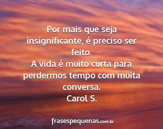 A vida é muito curta para perdermos tempo com muita conversa.Carol S.