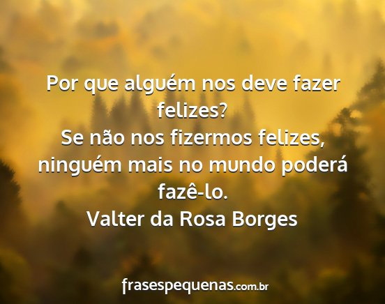 Se não nos fizermos felizes, ninguém mais no mundo poderá fazê-lo.Valter da Rosa Borges
