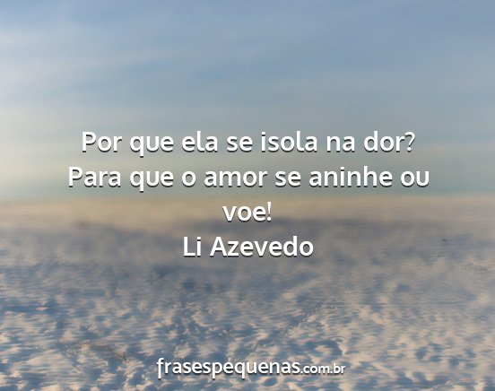 Por que ela se isola na dor? Para que o amor se aninhe ou voe!