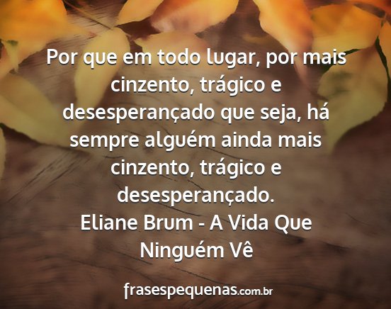 Por que em todo lugar, por mais cinzento, trágico e desesperançado que seja, há sempre alguém ainda mais cinzento, trágico e desesperançado.Eliane Brum - A Vida Que Ninguém Vê