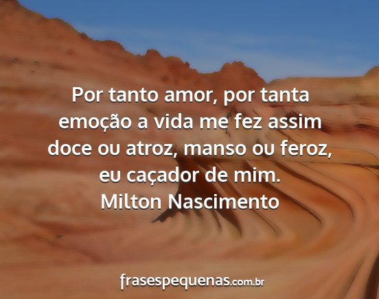 Por tanto amor, por tanta emoção a vida me fez assim doce ou atroz, manso ou feroz, eu caçador de mim.Milton Nascimento