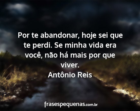 Por te abandonar, hoje sei que te perdi. Se minha vida era você, não há mais por que viver.Antônio Reis