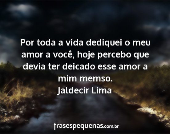 Por toda a vida dediquei o meu amor a você, hoje percebo que devia ter deicado esse amor a mim memso.Jaldecir Lima