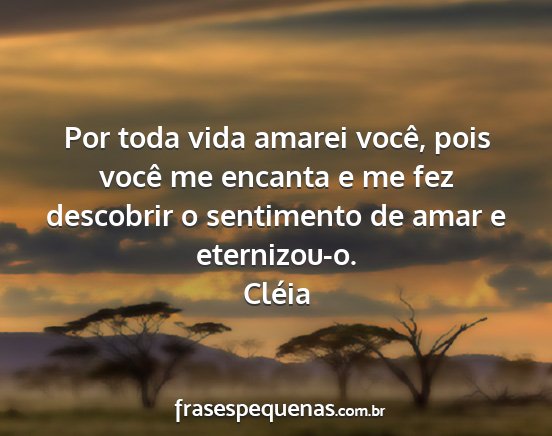 Por toda vida amarei você, pois você me encanta e me fez descobrir o sentimento de amar e eternizou-o.Cléia