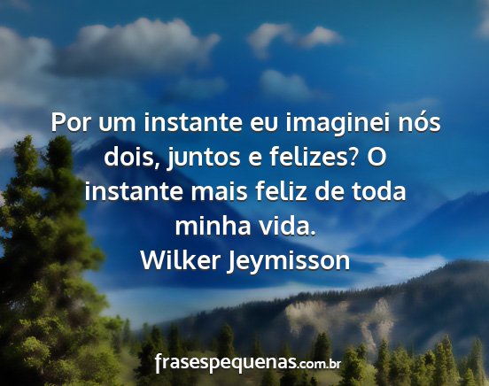 Por um instante eu imaginei nós dois, juntos e felizes? O instante mais feliz de toda minha vida.Wilker Jeymisson