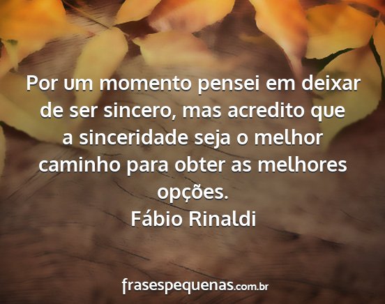 Por um momento pensei em deixar de ser sincero, mas acredito que a sinceridade seja o melhor caminho para obter as melhores opções.Fábio Rinaldi