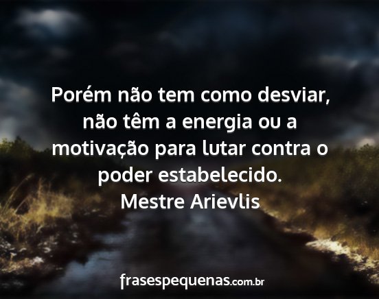 Porém não tem como desviar, não têm a energia ou a motivação para lutar contra o poder estabelecido.Mestre Arievlis