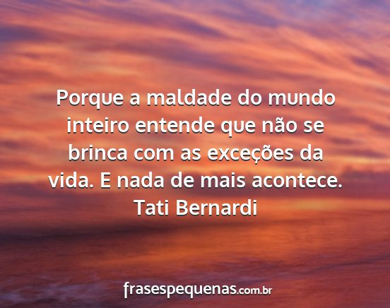 Porque a maldade do mundo inteiro entende que não se brinca com as exceções da vida. E nada de mais acontece.Tati Bernardi
