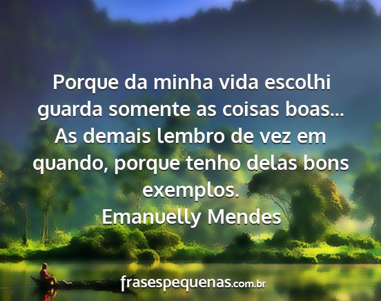 Porque da minha vida escolhi guarda somente as coisas boas... As demais lembro de vez em quando, porque tenho delas bons exemplos.Emanuelly Mendes