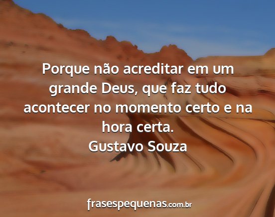 Porque não acreditar em um grande Deus, que faz tudo acontecer no momento certo e na hora certa.Gustavo Souza