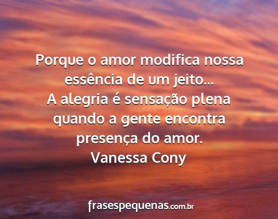 A alegria é sensação plena quando a gente encontra presença do amor.Vanessa Cony