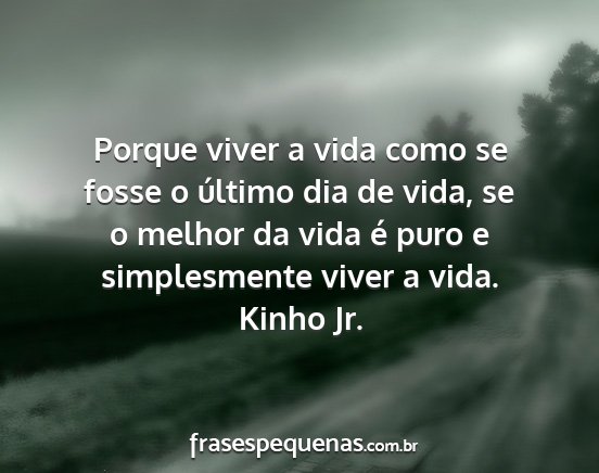 Porque viver a vida como se fosse o último dia de vida, se o melhor da vida é puro e simplesmente viver a vida.Kinho Jr.