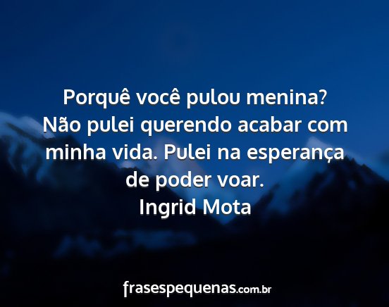 Não pulei querendo acabar com minha vida. Pulei na esperança de poder voar.Ingrid Mota