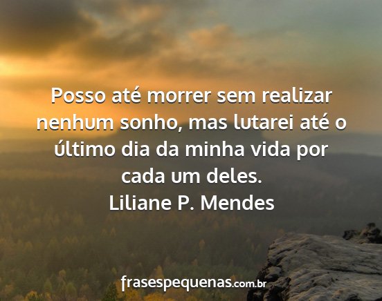 Posso até morrer sem realizar nenhum sonho, mas lutarei até o último dia da minha vida por cada um deles.Liliane P. Mendes