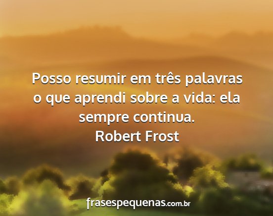Posso resumir em três palavras o que aprendi sobre a vida: ela sempre continua.