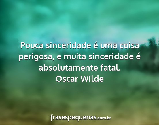 Pouca sinceridade é uma coisa perigosa, e muita sinceridade é absolutamente fatal.