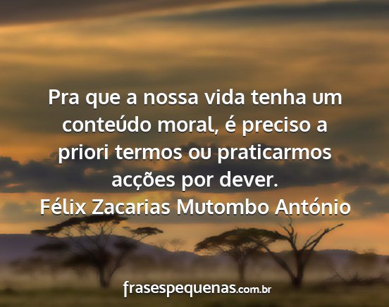 Pra que a nossa vida tenha um conteúdo moral, é preciso a priori termos ou praticarmos acções por dever.Félix Zacarias Mutombo António