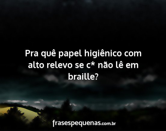 Pra quê papel higiênico com alto relevo se c* não lê em braille?