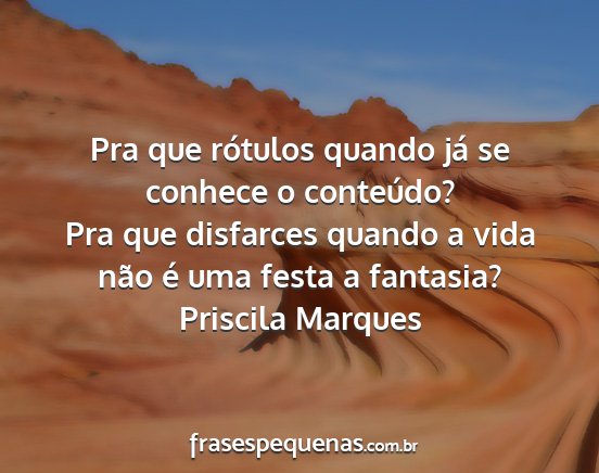 Pra que disfarces quando a vida não é uma festa a fantasia?Priscila Marques