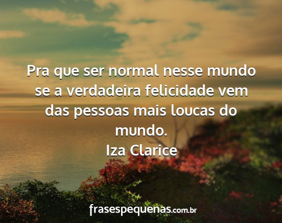 Pra que ser normal nesse mundo se a verdadeira felicidade vem das pessoas mais loucas do mundo.Iza Clarice